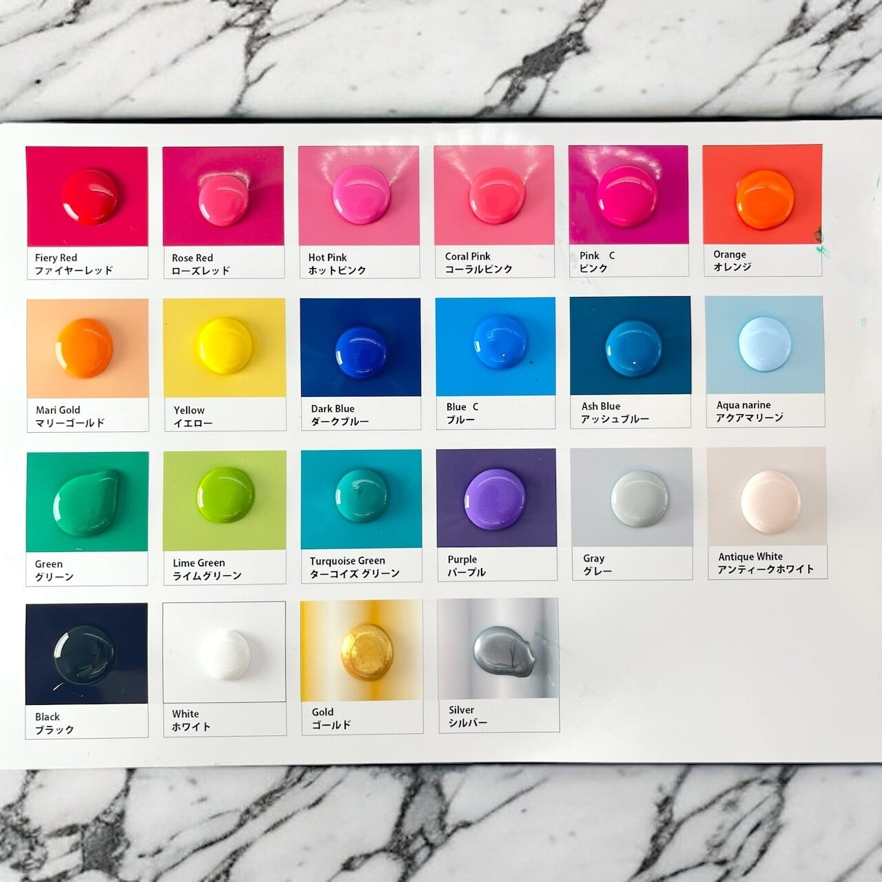 30mlボトルが各色12本ずつ、計60本付属します。